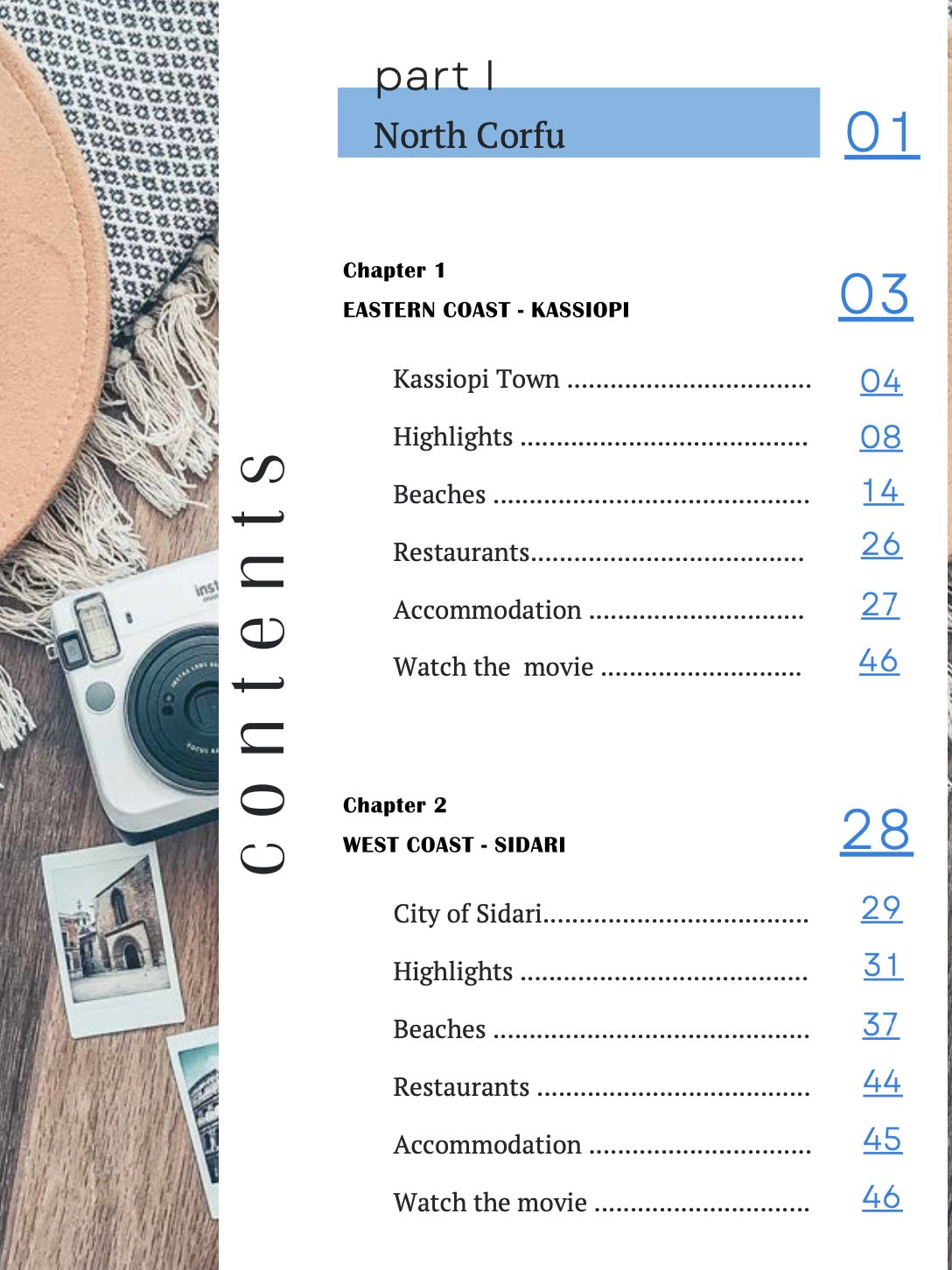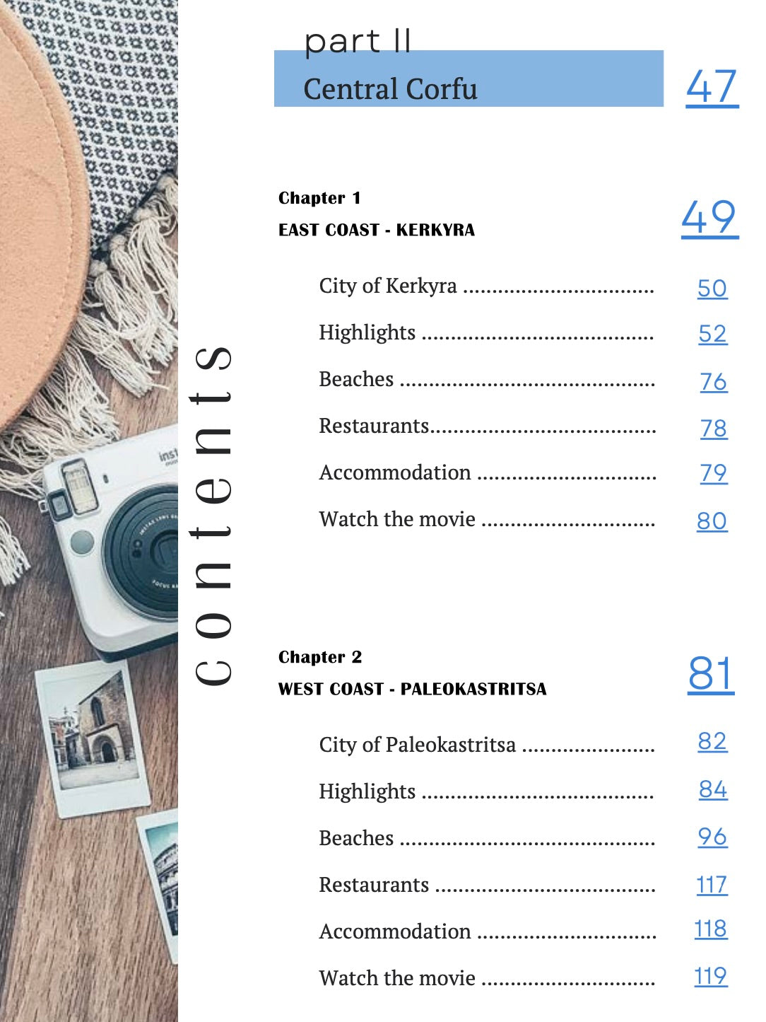 For better navigation both in the e-book and in Corfu, in each part we have listed chapters that thoroughly discuss even the furthest corners of the island: